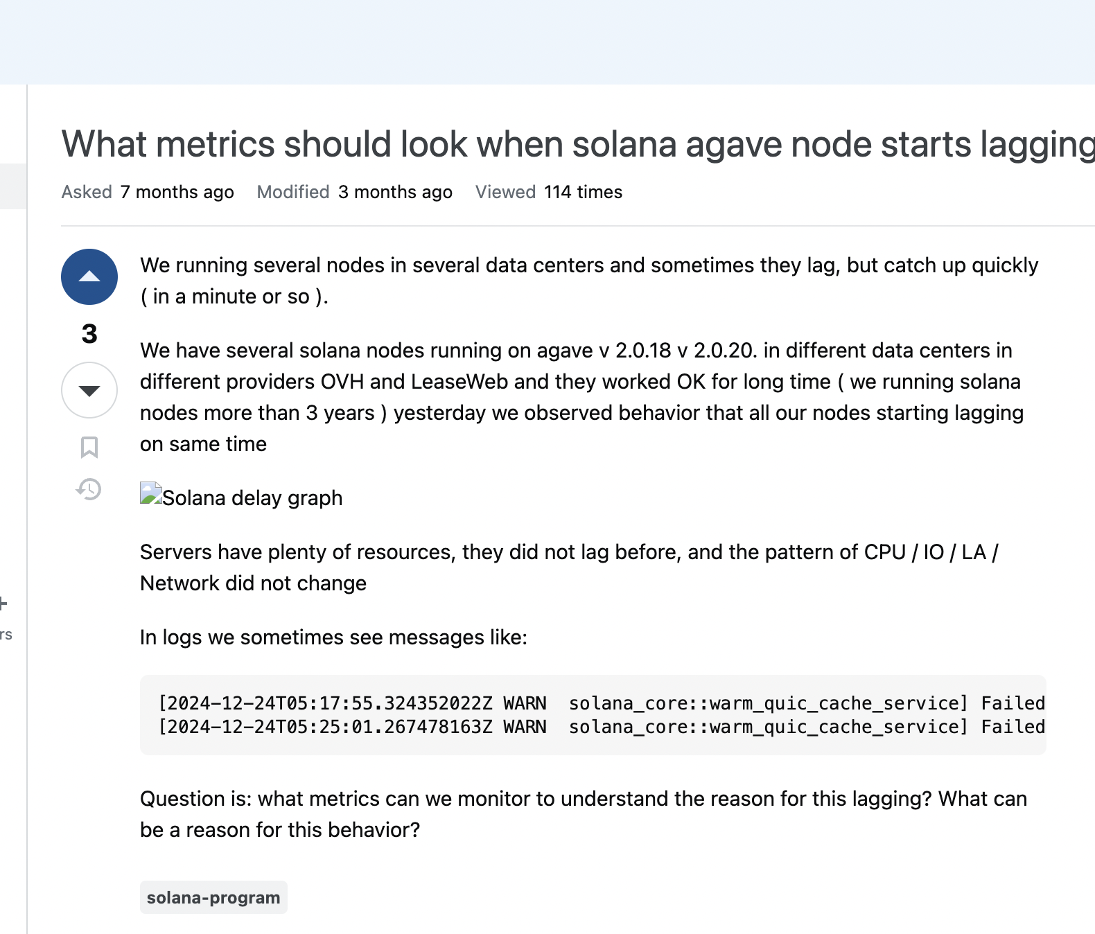 You're running a Solana trading bot that depends on real-time, low-latency price feeds. Suddenly, your dashboard shows stale data from 5 minutes ago. Is it a network issue? An API problem? Did your application crash? Or is it just Solana's network congestion? Without proper insight into what happened or where everything went wrong, you're flying blind — which, in crypto, equals losing money. What's more, you need to make sure that you are notified if this issue repeats itself.