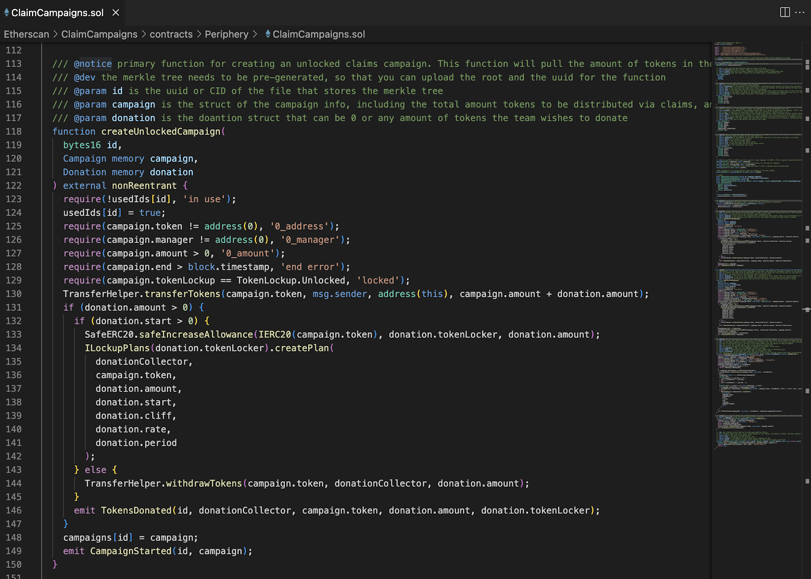 We don’t see this function now in the ClaimCampaigns.sol file which is now replaced with createUnlockedCampaign()